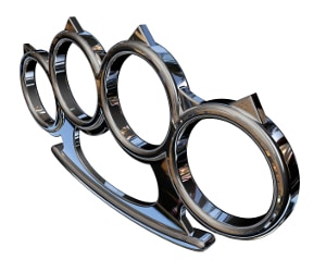 Ein bekanntes Beispiel hierfür ist der Schlagring, bestehend aus einem metallischen Griff mit vier Ringen, durch welche die Finger der Faust gesteckt werden.